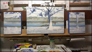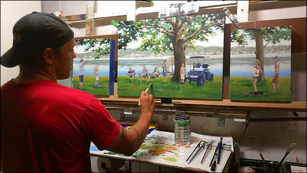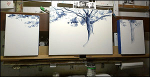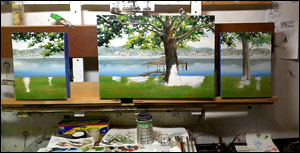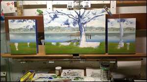 family tree (commission) oil on panel mounted atop a custom steel support (alternative to traditional hanging on wall)