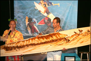 'A Surfer's Code' became the highlight of the night and created an enthusiasm in the crowd as they watched a bidding war which came to close at a joyous peak of the night - $20, 000, to the victor, Paul Naude, The man behind the wheel of Billabong International. |